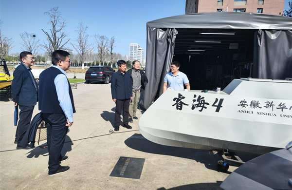 趙良慶對安徽省航海學(xué)會、合肥市海事(港航)管理服務(wù)中心領(lǐng)導(dǎo)的到來表示熱烈歡迎,并簡要介紹了學(xué)校的整體發(fā)展情況,重點闡述了我校睿航無人艇團隊近年來取得的成績。他指出,學(xué)校始終堅持以服務(wù)地方經(jīng)濟社會發(fā)展為導(dǎo)向,積極探索與行業(yè)、企事業(yè)單位、科研院所的交流與合作,致力于培養(yǎng)社會需求的高素質(zhì)應(yīng)用型人才,希望通過此次交流,能夠進一步加強與行業(yè)協(xié)會、管理部門的緊密合作,共同為安徽省內(nèi)陸湖水域的健康發(fā)展貢獻科研力量和人才支撐。