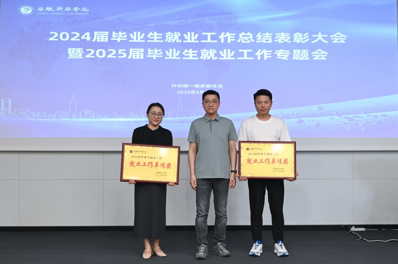 會上人事處副處長孫燕榮宣讀了《關(guān)于表彰2024屆畢業(yè)生就業(yè)工作先進(jìn)集體單位、就業(yè)單項獎單位和先進(jìn)個人的決定》,授予大數(shù)據(jù)與人工智能學(xué)院、電子工程學(xué)院/智能制造學(xué)院、藥學(xué)院“2024屆畢業(yè)生就業(yè)工作先進(jìn)集體”榮譽(yù)稱號;授予藝術(shù)學(xué)院、城市建設(shè)學(xué)院“2024屆畢業(yè)生就業(yè)工作單項獎”榮譽(yù)稱號;授予朱敏等20位同志“2024屆畢業(yè)生就業(yè)工作先進(jìn)個人”榮譽(yù)稱號。