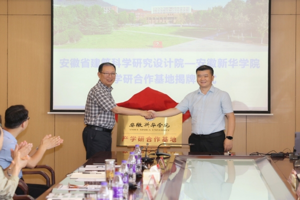 安徽省建科院黨委副書記、院長劉春雷與安徽新華學(xué)院校長趙良慶共同為產(chǎn)學(xué)研合作基地揭牌。隨著紅綢緩緩落下,產(chǎn)學(xué)研合作基地正式成立,這不僅是雙方合作的重要里程碑,更是雙方攜手共進(jìn)、共謀發(fā)展的新起點(diǎn)。