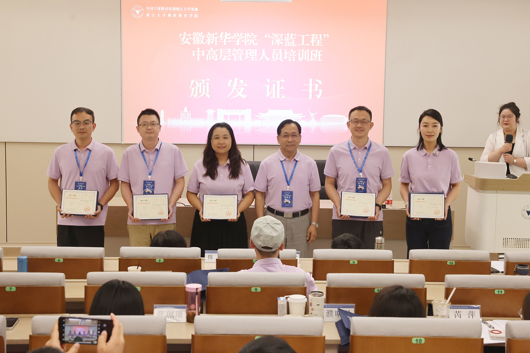 為深入學(xué)習(xí)貫徹習(xí)近平新時(shí)代中國特色社會主義思想和黨的二十大、二十屆三中全會精神,加強(qiáng)學(xué)校黨建工作,以高質(zhì)量黨建引領(lǐng)學(xué)校高質(zhì)量發(fā)展,7月28日至8月1日,我校2025年“深藍(lán)工程”在浙江大學(xué)開班。集團(tuán)領(lǐng)導(dǎo),學(xué)校黨政班子全體成員,各二級單位負(fù)責(zé)人等50余人參加了培訓(xùn)班。