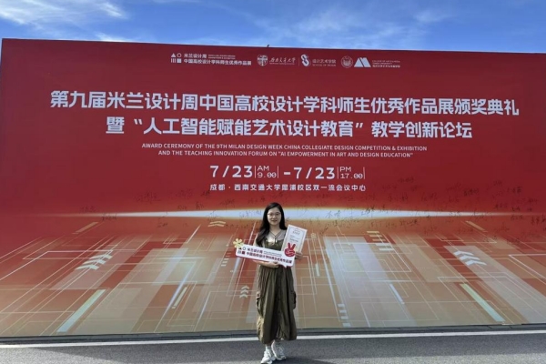 本網(wǎng)訊(通訊員:尤曉旭) 2025年7月,第九屆米蘭設(shè)計(jì)周-中國高校設(shè)計(jì)學(xué)科師生優(yōu)秀作品展頒獎(jiǎng)典禮暨“人工智能賦能藝術(shù)設(shè)計(jì)教育”教學(xué)創(chuàng)新論壇在成都成功舉辦。城市建設(shè)學(xué)院尤曉旭老師受邀參加此次活動(dòng),并憑借在賽事指導(dǎo)中的出色表現(xiàn),榮獲優(yōu)秀指導(dǎo)教師稱號,為學(xué)校爭得了榮譽(yù)?!睹滋m設(shè)計(jì)周-中國高校設(shè)計(jì)學(xué)科師生優(yōu)秀作品展》是由中國教育國際交流協(xié)會(huì)、中國高等教育學(xué)會(huì)聯(lián)合發(fā)起并主辦的重要賽事,旨在反映我國設(shè)計(jì)類專業(yè)教學(xué)水平,為全國藝術(shù)設(shè)計(jì)類專業(yè)師生搭建國際化交流學(xué)習(xí)平臺,已連續(xù)5年入選中國高等教育學(xué)會(huì)發(fā)布的《全國普通高校大學(xué)生競賽排行榜》。