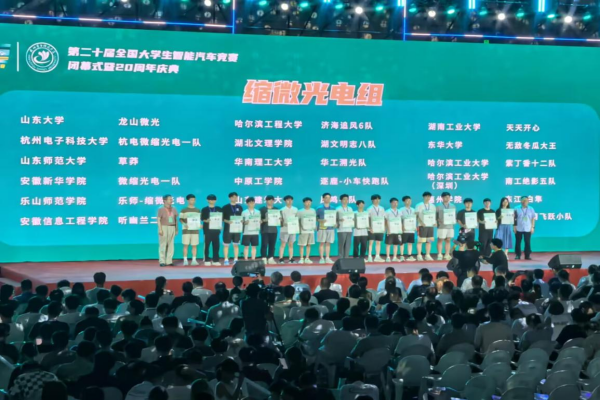 本網(wǎng)訊(通訊員:?jiǎn)碳t嬌)近日,2025年第二十屆全國(guó)大學(xué)生智能汽車競(jìng)賽全國(guó)總決賽在浙江杭州電子科技大學(xué)體育館圓滿落幕。由電子工程學(xué)院/智能制造學(xué)院?jiǎn)碳t嬌、史道玲和李紅星三位指導(dǎo)老師共同指導(dǎo)鄭天樂、郝鴻寶和周昕組成的縮微光電組(安徽區(qū)域賽省冠)和唐誠(chéng)威、謝邦元、楊沈銳、印邦陽和張一凡組成的雙車跟隨組參加了本次全國(guó)總決賽。經(jīng)過激烈地角逐,兩支隊(duì)伍表現(xiàn)卓越,雙雙榮獲全國(guó)總決賽一等獎(jiǎng),其中縮微光電組躋身全國(guó)前四強(qiáng)。
