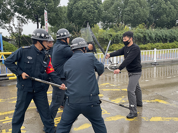演練過程中,面對模擬“歹徒”的突然襲擊,校衛(wèi)隊反應(yīng)迅速、配合默契,第一時間啟動應(yīng)急預(yù)案,運用盾牌、鋼叉等專業(yè)防暴器械,與駐校警務(wù)人員協(xié)同作戰(zhàn),迅速將“歹徒”制服。整場演練組織有序、處置高效,充分展現(xiàn)了我校安保隊伍過硬的業(yè)務(wù)素質(zhì)和應(yīng)急能力。