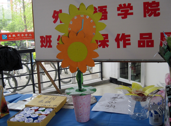 4月13日,外國(guó)語學(xué)院團(tuán)總支學(xué)生會(huì)生活部組織各班級(jí)舉辦了一次班級(jí)環(huán)保作品展。