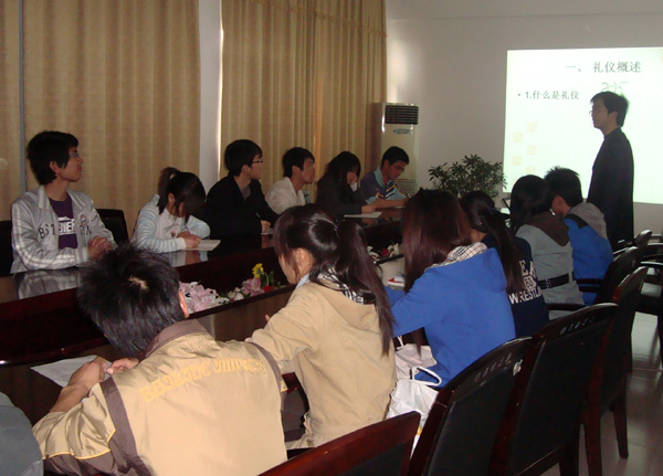 在一個小時的培訓(xùn)中,周老師語言生動幽默,他利用多媒體向?qū)W生助理重點講解了儀表禮儀、辦公室禮儀、電話禮儀。隨后,周老師就禮儀方面的問題與學(xué)生助理進行了互動,大家就培訓(xùn)內(nèi)容進行了討論。周老師還對學(xué)生助理實際工作中遇到的一些難題進行了解答。