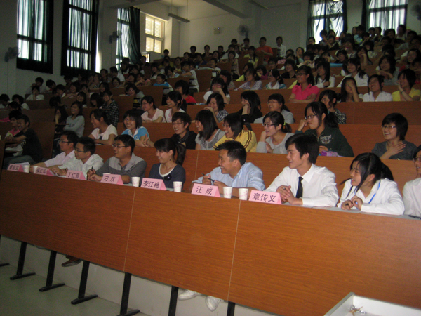 “相信愛,鼓動生命;珍惜愛,跳動生命;因為愛,永恒生命”,在選拔賽中,同學(xué)們用豐富的表情、生動的語言將復(fù)雜的心理變化呈現(xiàn)給觀眾,賦予了心理劇很強的人生哲理。其中,09藥劑(1)班的參賽作品《生命的蛻變》尤為出彩,演員們通過默契的配合、到位的表演、扣人心弦的情節(jié),將處于癌癥晚期的學(xué)生心理矛盾、心理變化展現(xiàn)得淋漓盡致,博得了觀眾一次又一次掌聲。