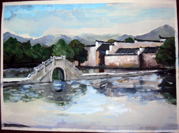 寫生期間,大家一同作畫,彼此間相互交流,在交流中,同學們共同學習、共同提高。指導老師在返校后講到,學生每天要完成五張速寫,一張水粉,而且每位同學都能認真完成每一幅作品,晚上做集中講評,以便學生能及時了解自己作品的長短之處。從同學們的作品中,指導老師能看出他們的認真態(tài)度和用心程度。