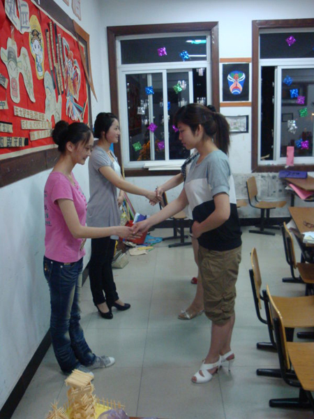 根據(jù)學(xué)院進(jìn)一步加強(qiáng)禮儀知識宣傳教育活動的意見,大力普及基本禮儀知識和文明禮儀常識,5月26日,動漫學(xué)院團(tuán)總支、學(xué)生會以趙靜、陳麗娜、陳淮淮三位同學(xué)為榜樣開展了“講文明、樹新風(fēng)”禮儀培訓(xùn),讓3位同學(xué)充分展示自己的所學(xué)禮儀知識,將四體會“文明、節(jié)儉、時(shí)尚”的精神傳播到學(xué)生中去。