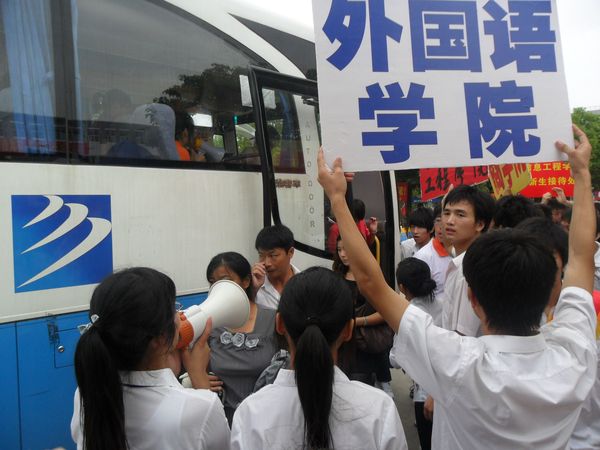 自9月1日早上七點(diǎn)起,外國(guó)語(yǔ)學(xué)院全體教職工、院學(xué)生會(huì)、院長(zhǎng)助理團(tuán)及各班積極分子組成的迎新團(tuán)隊(duì)在學(xué)院領(lǐng)導(dǎo)的帶領(lǐng)下,走上了迎新的第一線,他們微笑服務(wù),真誠(chéng)解惑,兢兢業(yè)業(yè),默默奉獻(xiàn)。