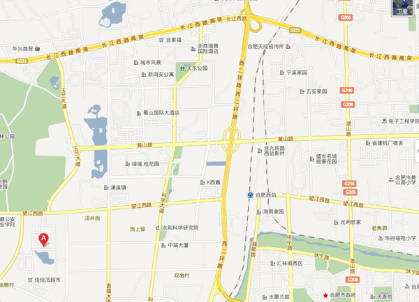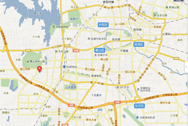 2、沿合淮阜高速行至合肥市“蜀山”道口,沿合六路向東行至長(zhǎng)江西路,沿長(zhǎng)江西路向東行駛至玉蘭大道交叉口,沿玉蘭大道向南行駛至望江西路到即可
