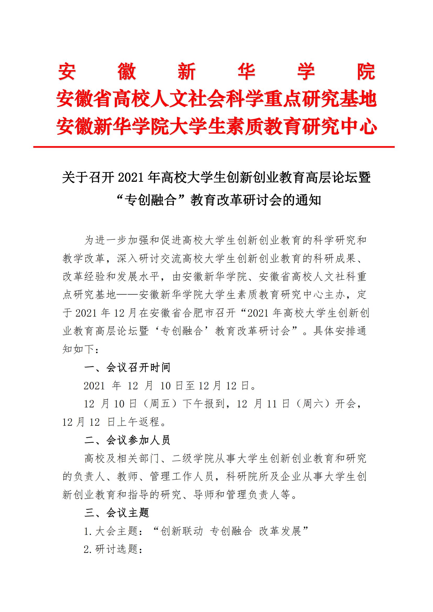 關于召開2021年高校大學生創(chuàng)新創(chuàng)業(yè)教育高層論壇暨“專創(chuàng)融合”教育改革研討會的通知