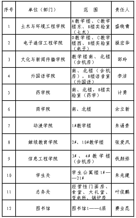 1、此次排查活動(dòng)各二級(jí)學(xué)院行政副院長(zhǎng)及相關(guān)部門(mén)(總務(wù)處、學(xué)生處、圖書(shū)館)的負(fù)責(zé)人是第一責(zé)任人,要嚴(yán)格按照統(tǒng)一部署,落實(shí)責(zé)任,組織開(kāi)展排查工作。