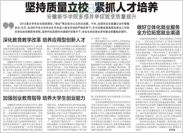 新安晚報:堅持質(zhì)量立校 緊抓人才培養(yǎng)