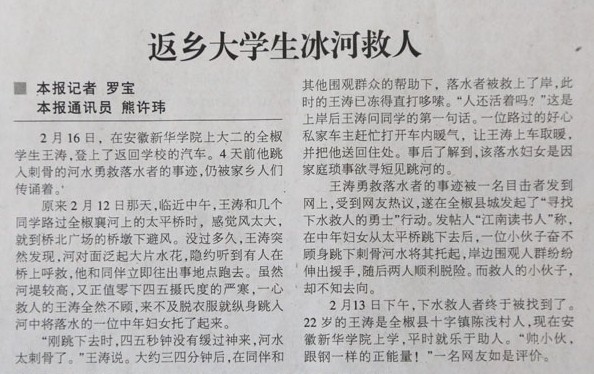 安徽日報(bào):返鄉(xiāng)大學(xué)生冰河救人