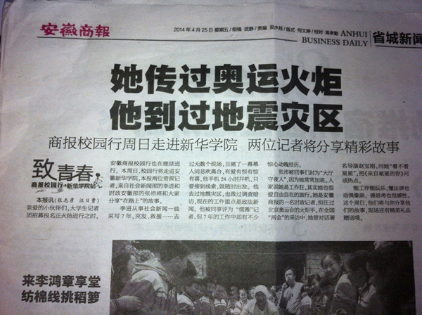 安徽商報(bào):商報(bào)校園行周日走進(jìn)新華學(xué)院 兩位記者將分享精彩故事