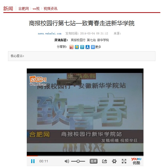 合肥網(wǎng):商報(bào)校園行第七站—致青春走進(jìn)新華學(xué)院