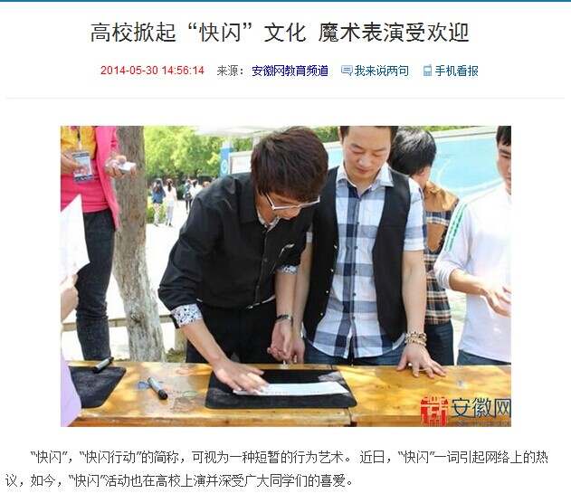 安徽網(wǎng):高校掀起“快閃”文化 魔術(shù)表演受歡迎