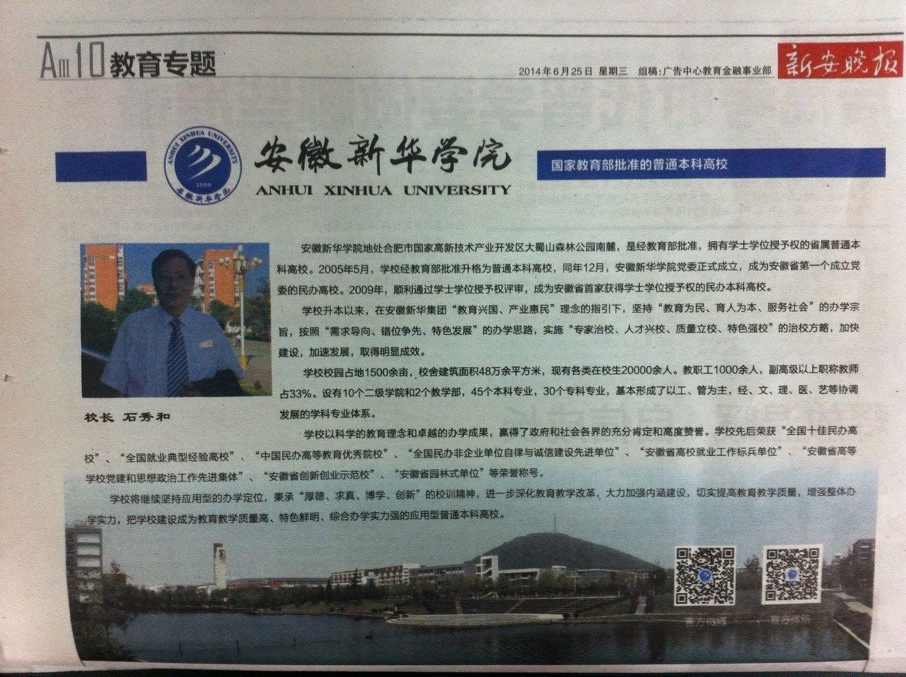 新安晚報(bào):安徽新華學(xué)院——國家教育部批準(zhǔn)的普通本科高校