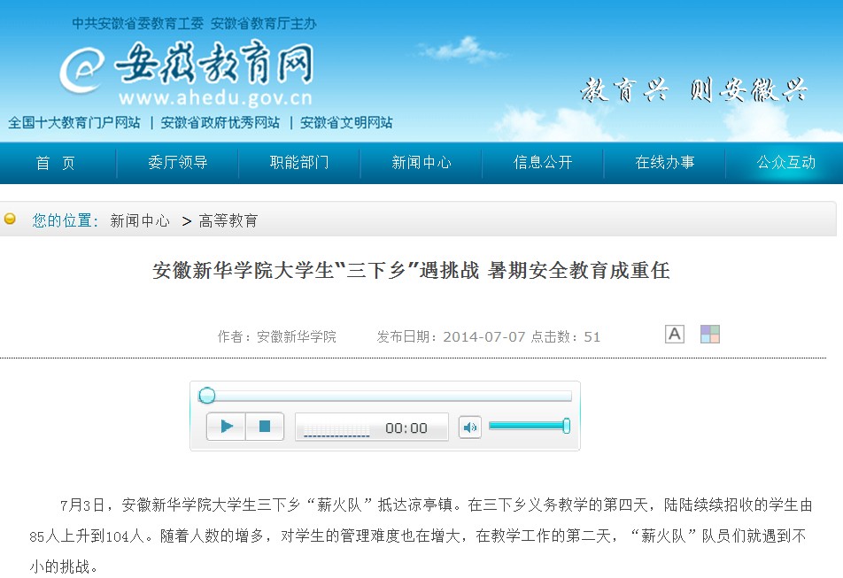 安徽教育網(wǎng):安徽新華學(xué)院大學(xué)生“三下鄉(xiāng)”遇挑戰(zhàn) 暑期安全教育成重任