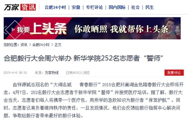 萬(wàn)家熱線:合肥毅行大會(huì)周六舉辦 新華學(xué)院252名志愿者“誓師”