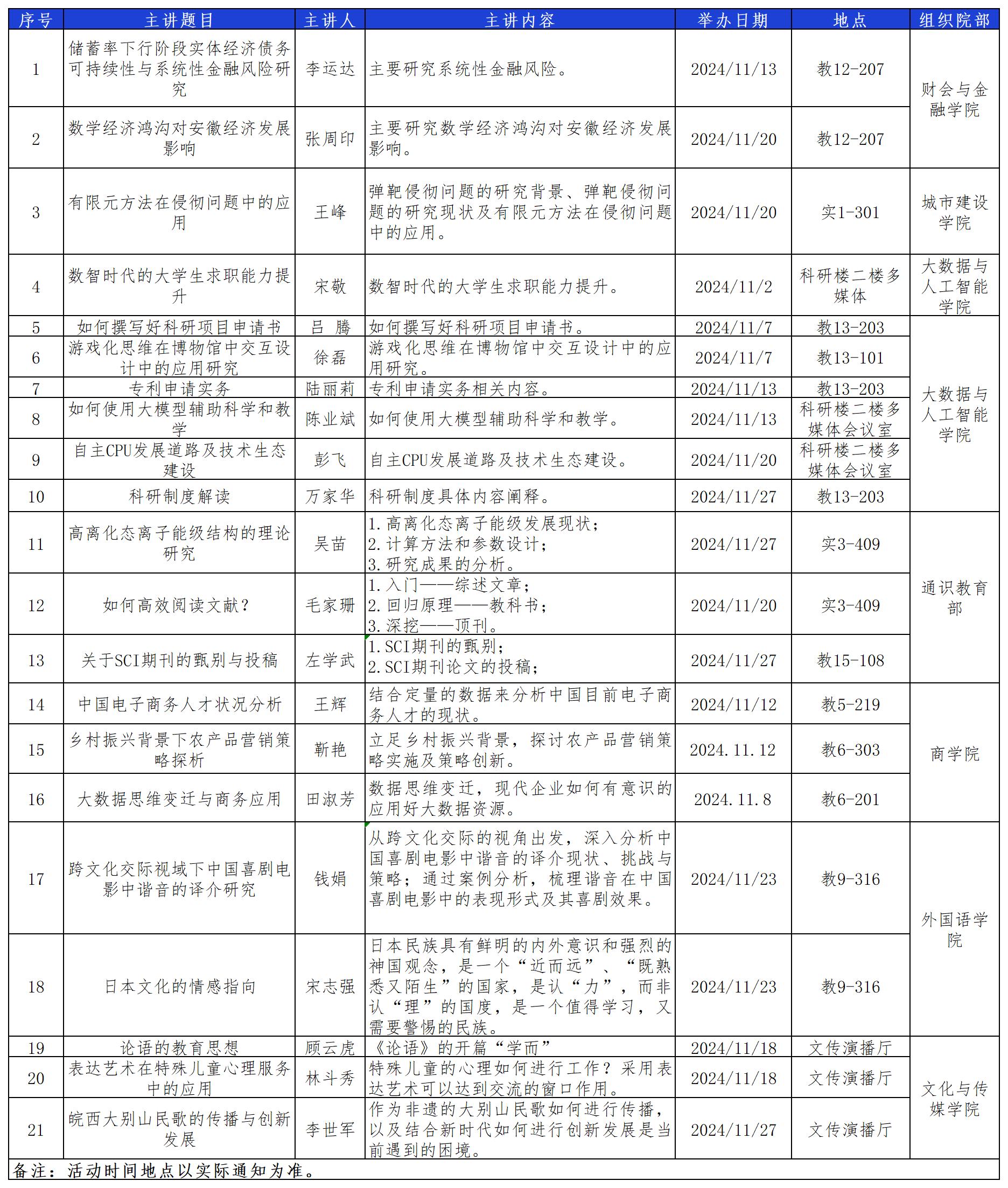 安徽新華學(xué)院2024年11月科研活動預(yù)告表